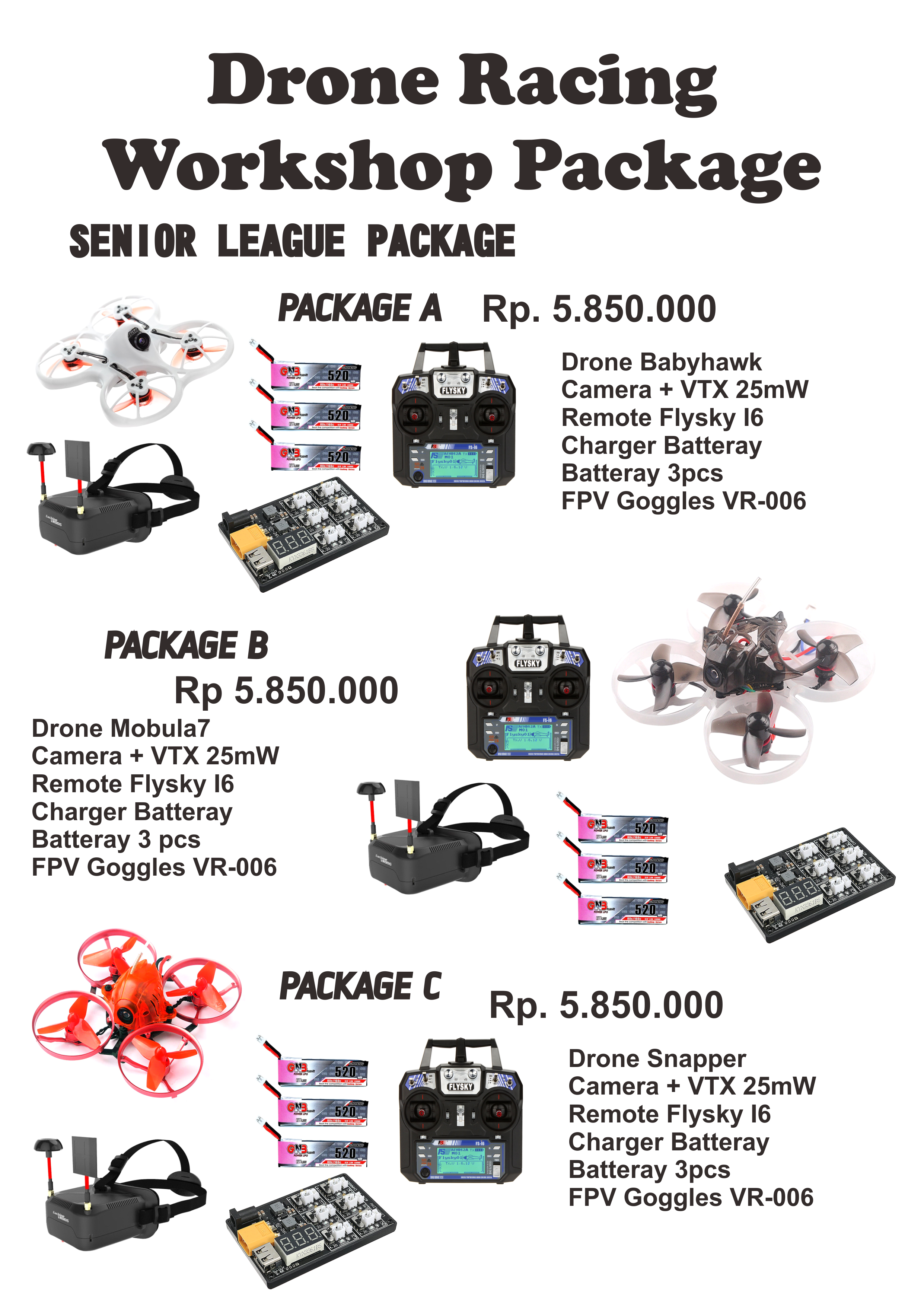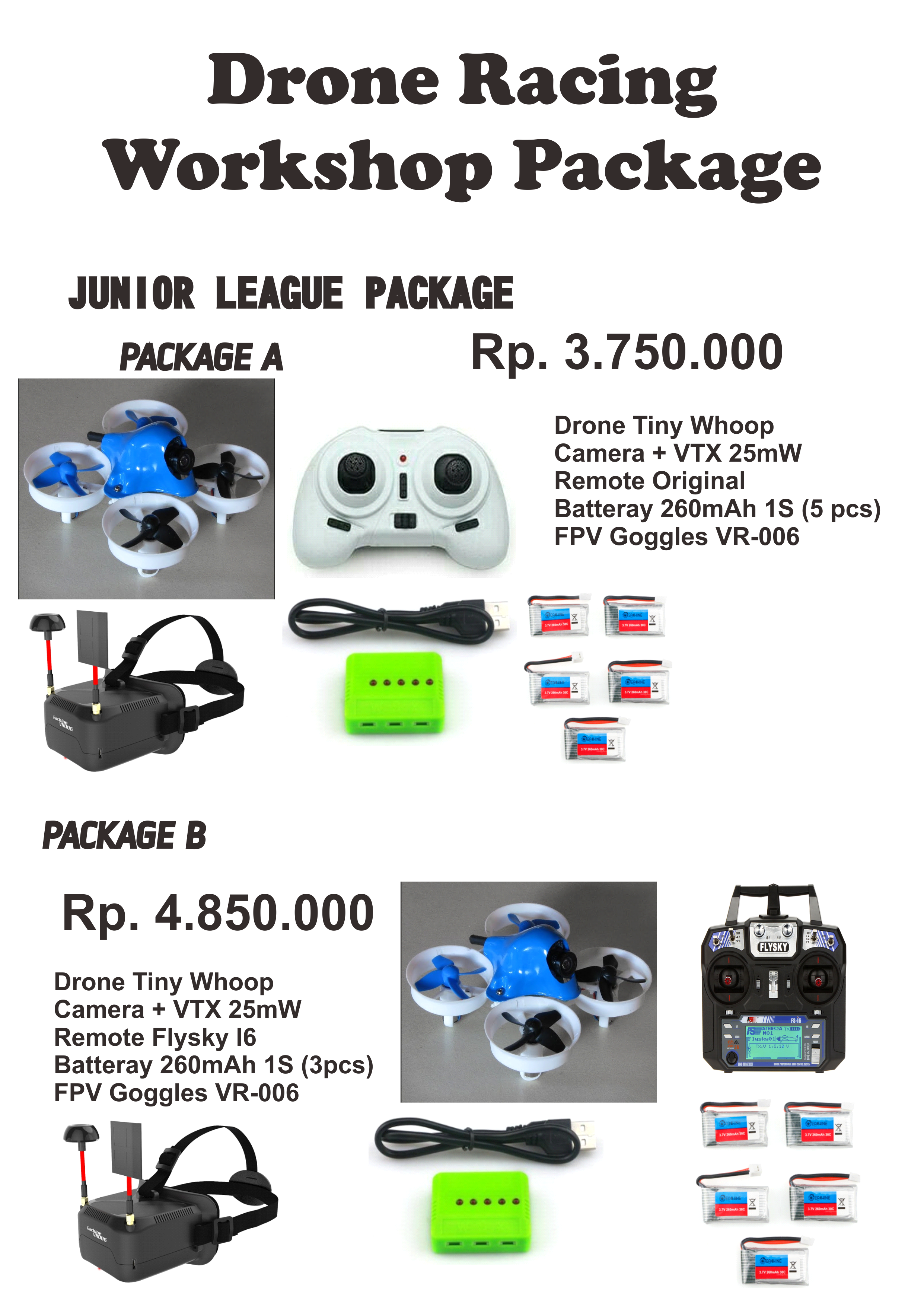 Note : Workshop fee includes Drone Racing Competition registration fee. Registration Fee for Drone Racing Competition IDR 350,000.00/Team Rule Drone Racing Competition Rule Drone Racing Competition